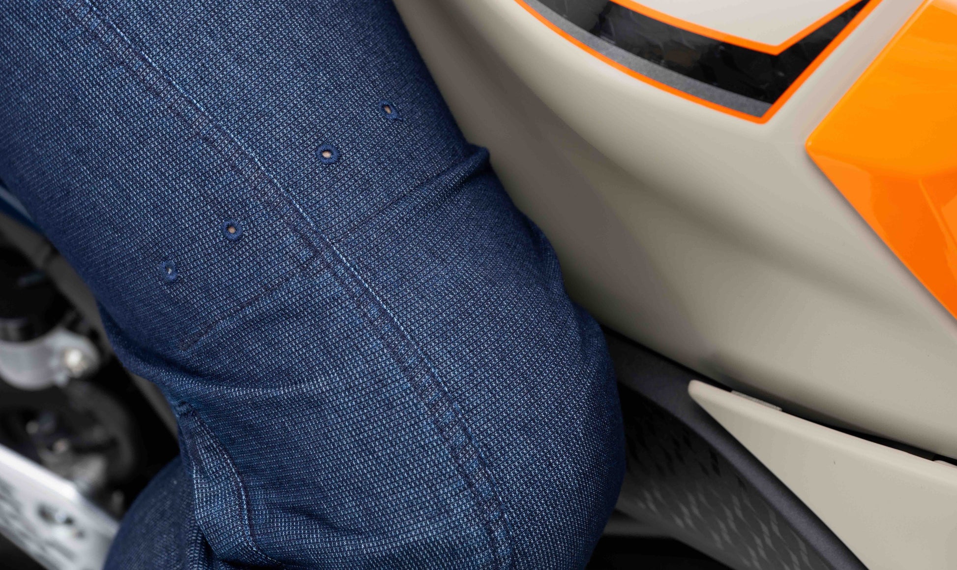 フィン付き空冷式デニムの走行風を取り込む機能はそのままに、4,000人のライダーの改良に関するご意見を取り入れて、より多くのライダーにご支持頂け、より涼しくなります!もちろんバイク乗車に更に最適化されていますよ!