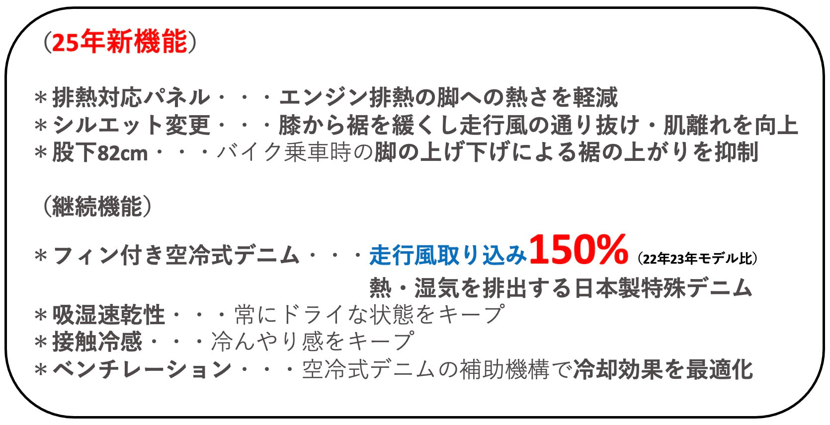 走行風を取り込む【空冷式ジーンズ】が「排熱対策」で大型モデルチェンジ(25年モデル)