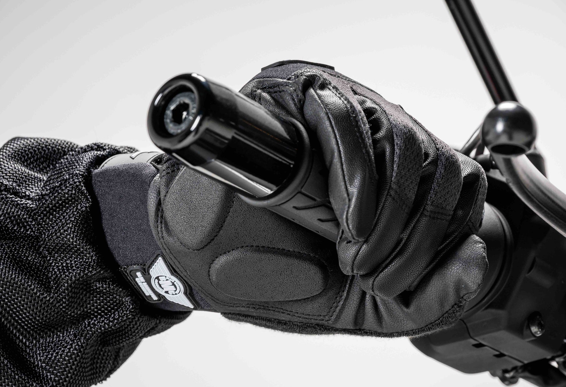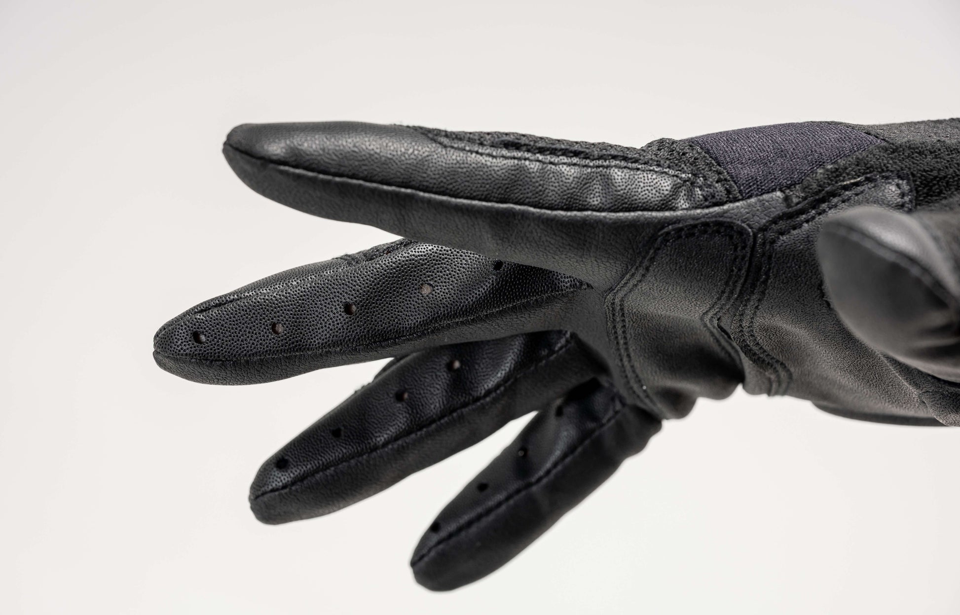 メッシュ素材の走行風を取り込み量が毎秒250ccに向上しました。拳・手首からも走行風を取り込み、そして指の間からも直接走行風を取り込む新機構エアインテークを搭載し更に涼しくなりました!もちろん25年モデルの抜群のグリップ力・素肌のようなフィット感・完璧なスマホタッチ機能は引き継いでいますよ!よりバイク操作に最適化されていますよ!