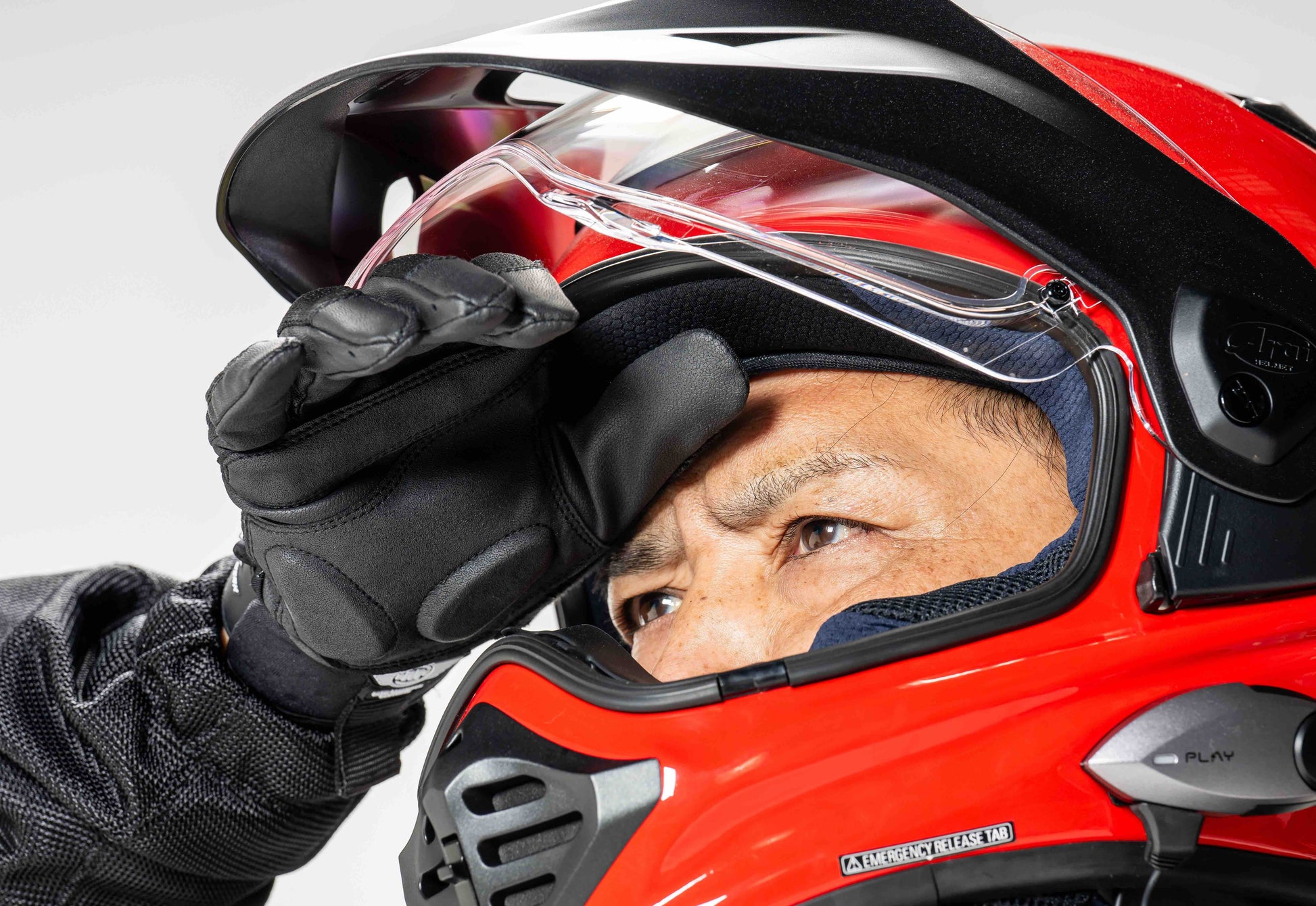 そして、バイク用グローブで地味にストレスを感じるシールドの開閉も素肌感覚で適切に対応できます。ガチで素肌感覚で。
