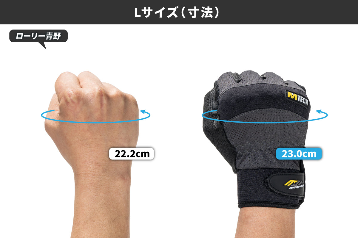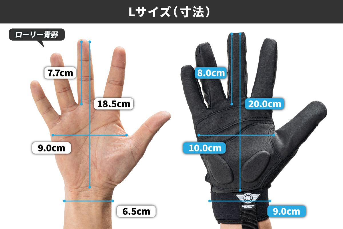 ・Lサイズ( 手の平幅10.0cm / 中指の長さ8.0cm / 拳周り23.0cm )