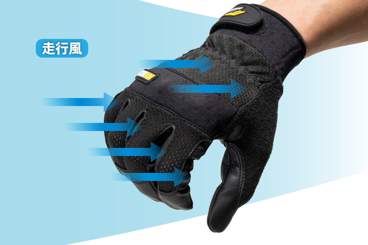 (注意1)エアインテーク空冷式グローブは、バイク乗車時に涼しさを追求した一点集中機能のグローブです。