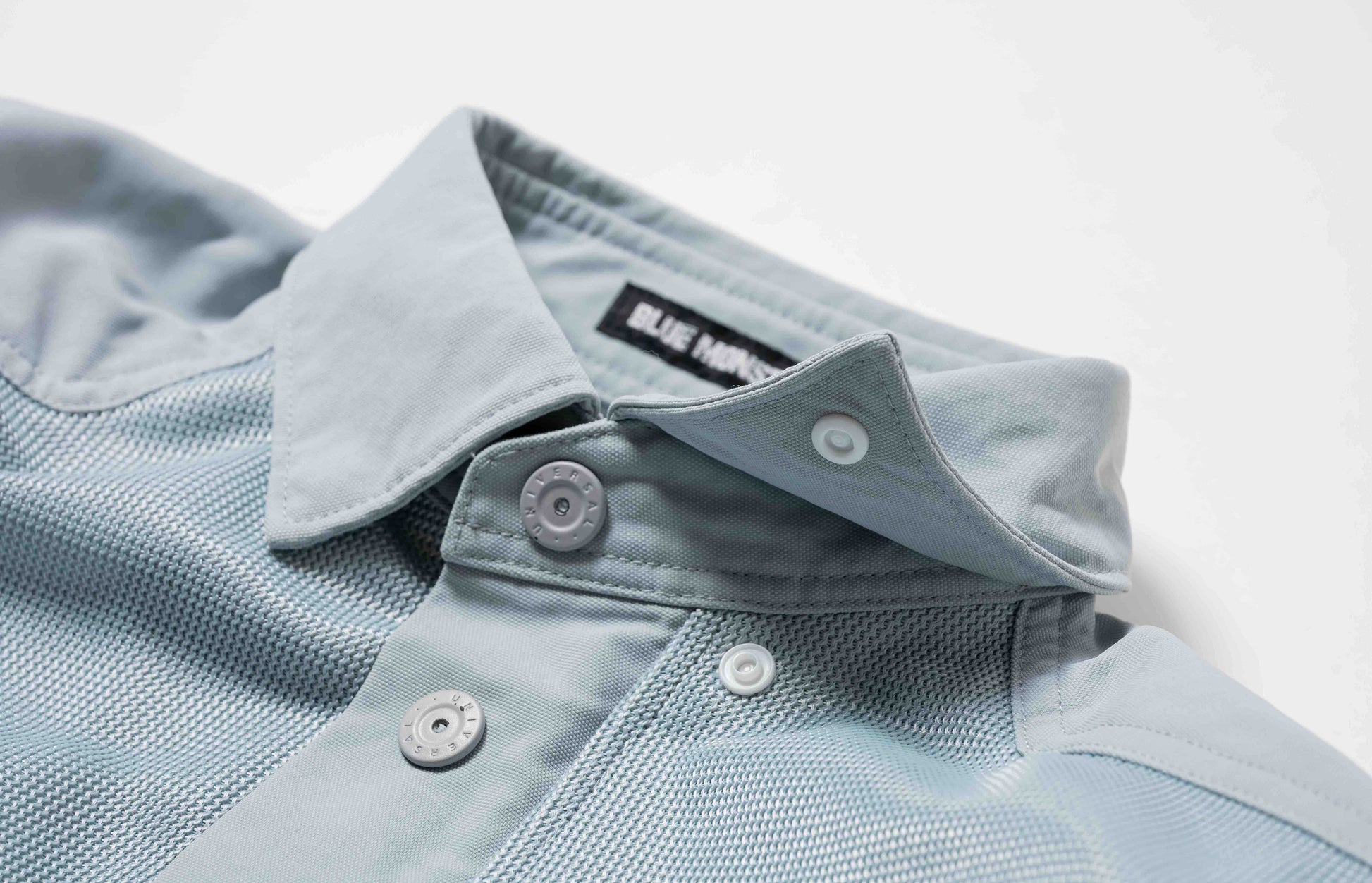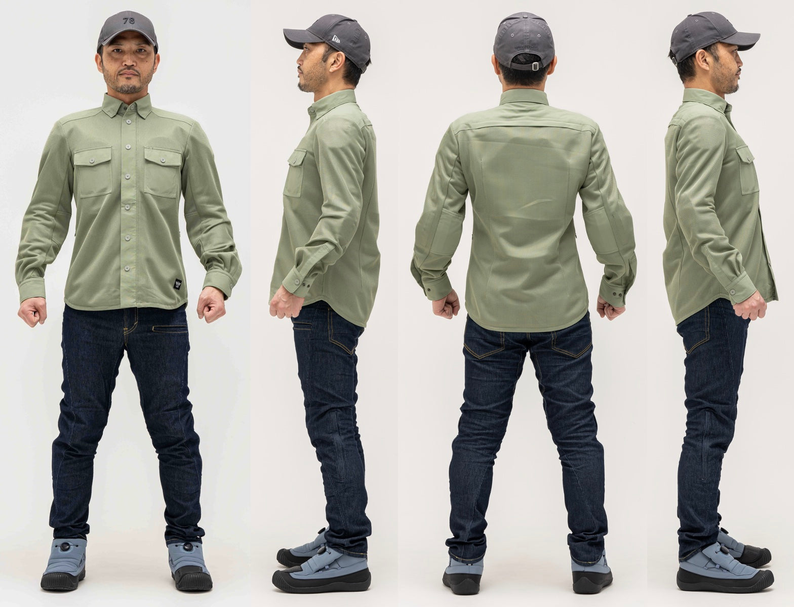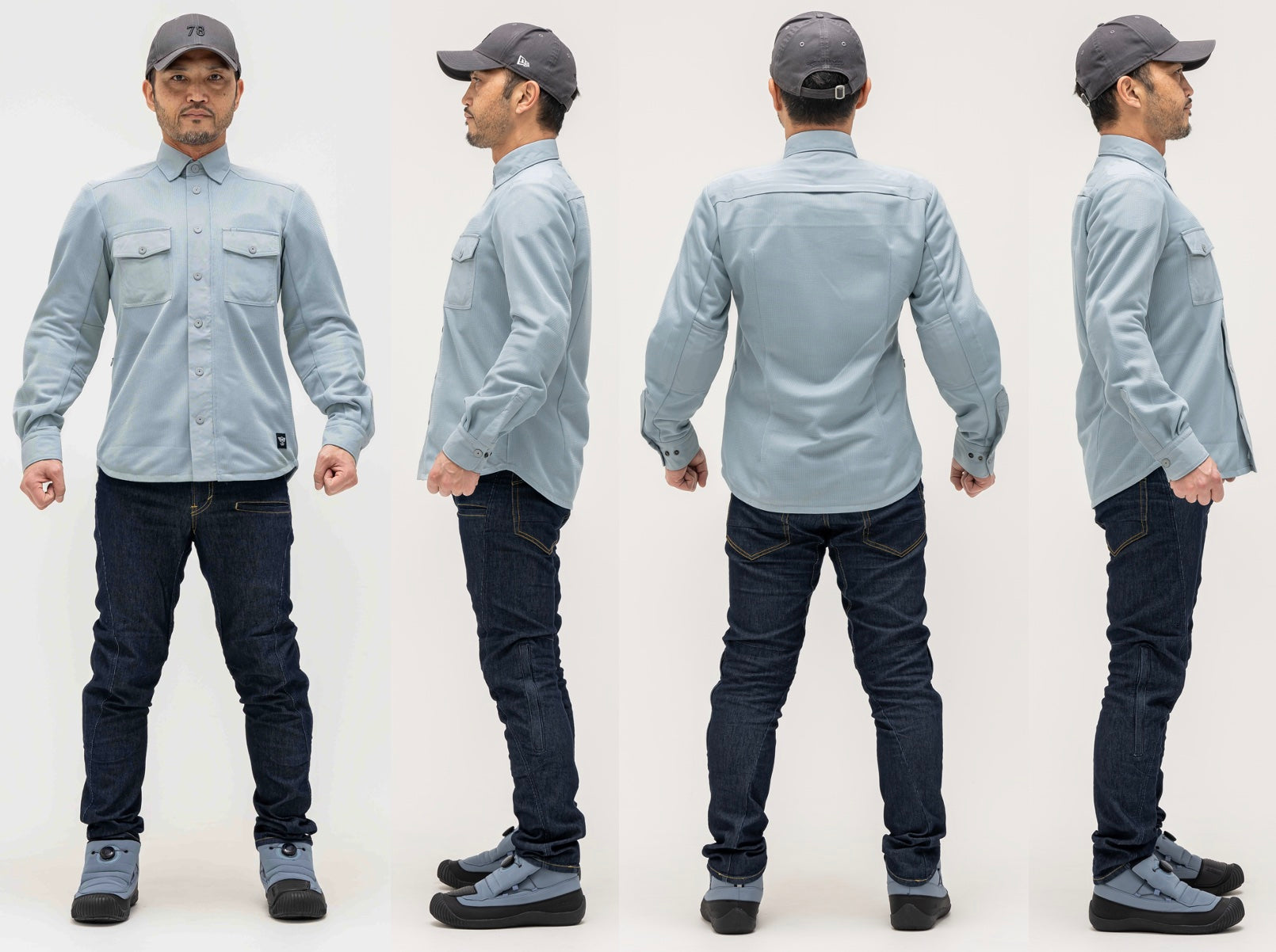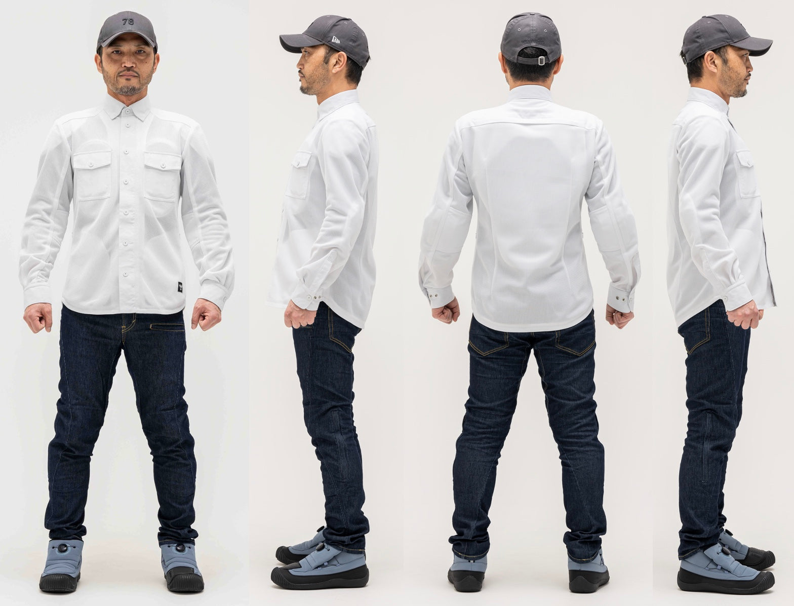 24年に【空冷式シャツ】を着用頂いたライダーより多くの要望がありました。「ホワイト、ブラック以外のカラーが欲しい!」と。アンケートを取り要望の多かったカーキ(グリーン)とブルーを追加して25年【空冷式シャツ】は4カラー展開になります!そして、昨年はメッシュ素材とそれ以外の素材の色を同色系で配色にしていましたが、25年版はそれらを同色にして、よりシャツとして着用しやすい様に改良しています!