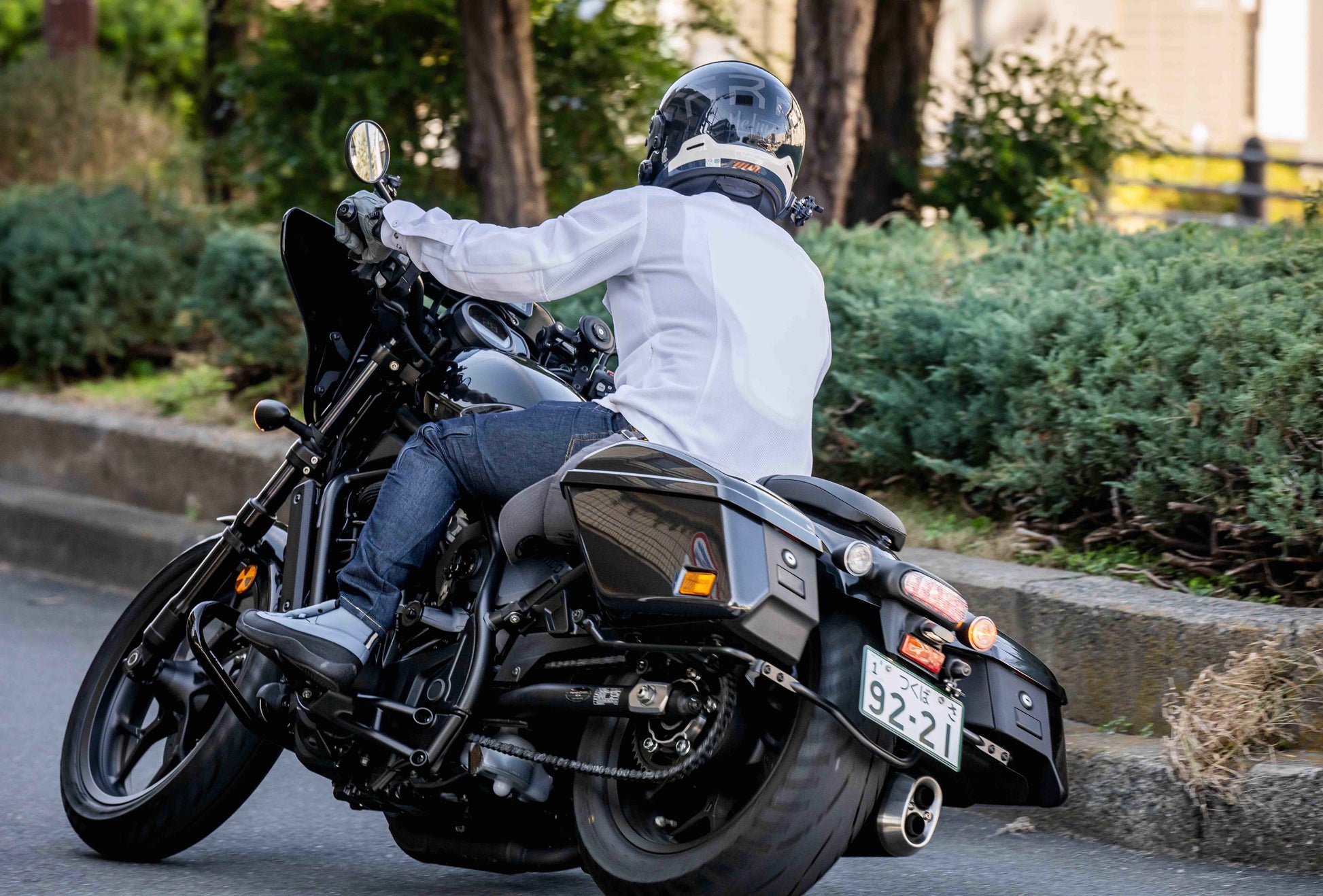 車種にもよりますがバイク乗車時に前傾になる事は多々あります。一般的なシャツを着てバイクに乗ると・・・背中見えた事ありませんか?なんか背中と腰辺りがスースーするなぁ〜と思ったら、それは背中が見えています(笑)