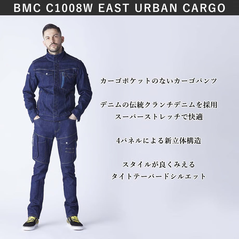 最新作業服 ストレッチデニム カーゴパンツ タイトフィット/ BMC EAST URBAN CARGO TIGHT TAPERED RINSE & MID USED / C1008W