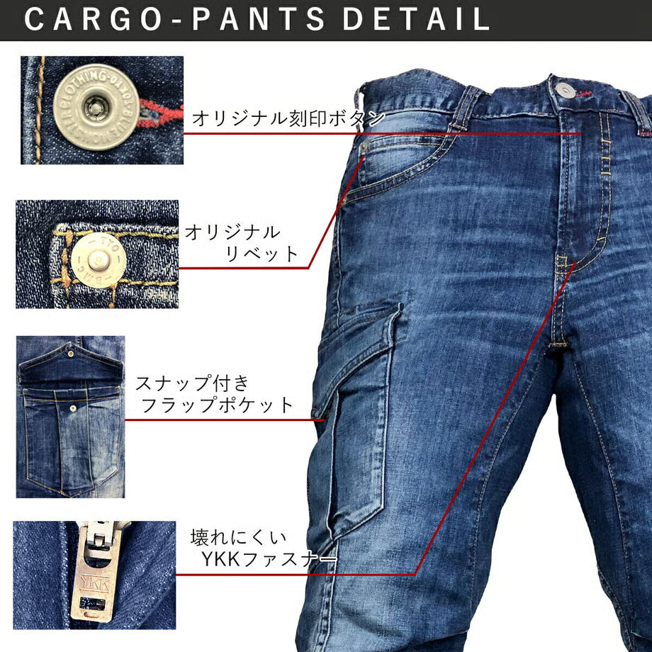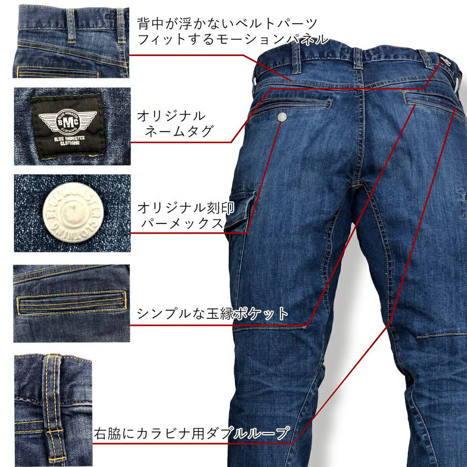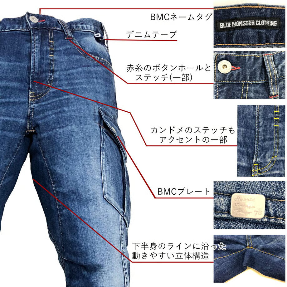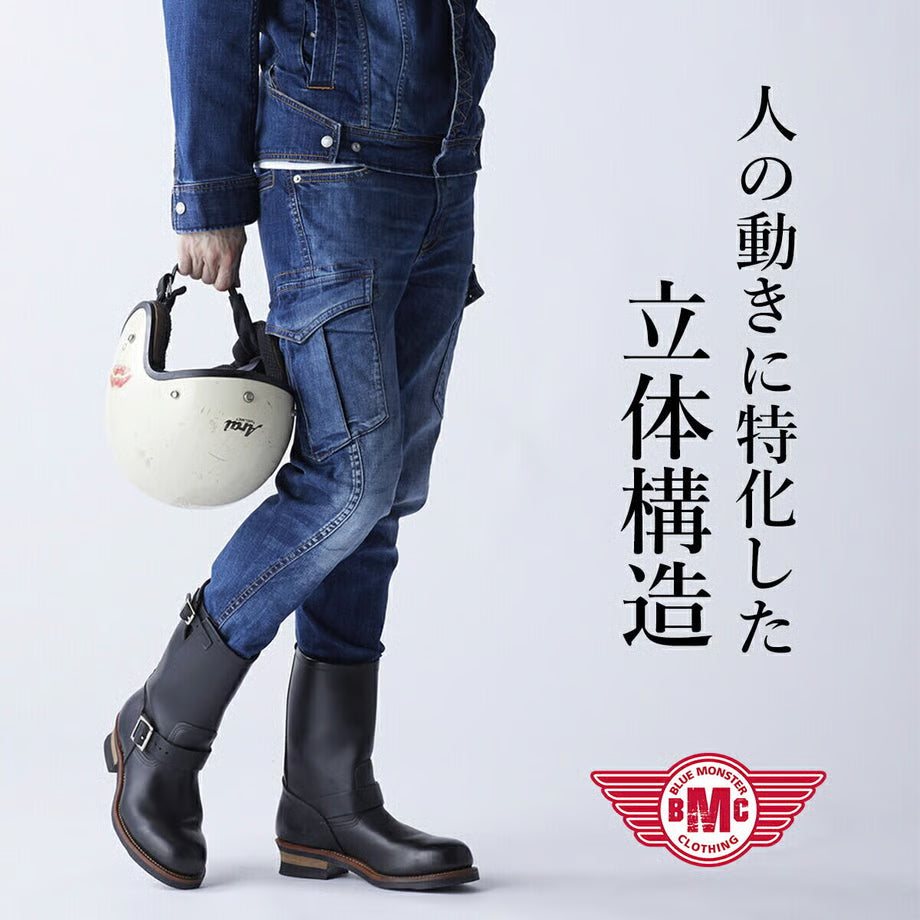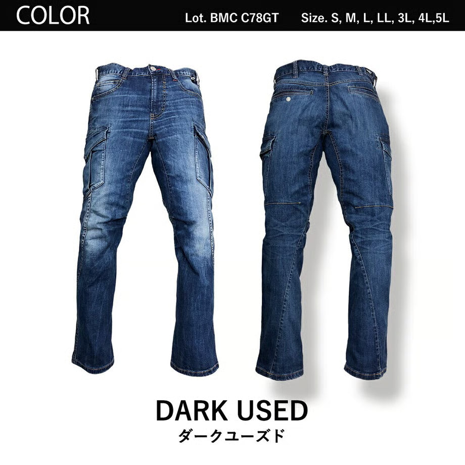 (立体構造)作業服 ストレッチデニム ライダーカーゴパンツ レギュラーフィット/ BMC GT8-XX CARGO INDIGO DARK / C78GT