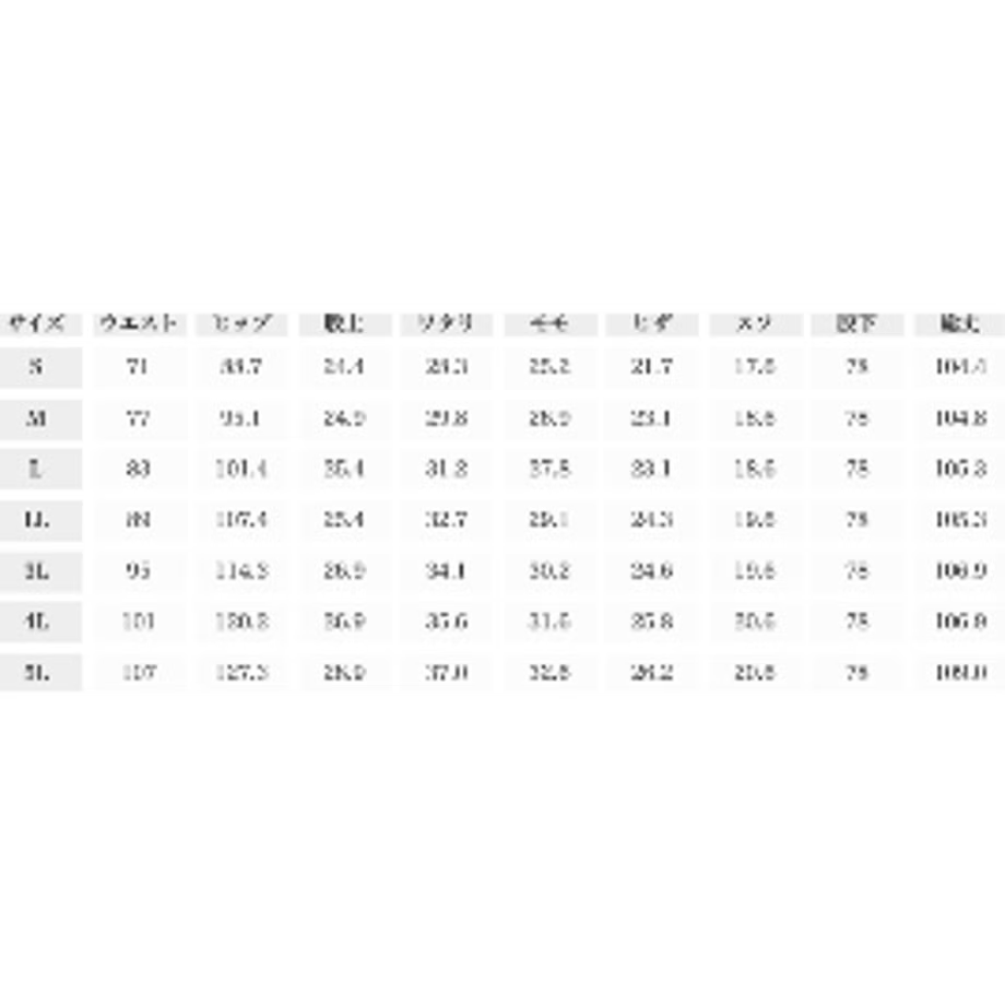 | サイズ | ウエスト | ヒップ | 股上 | ワタリ | モモ | ヒザ | スソ | 股下 | 総丈 |
