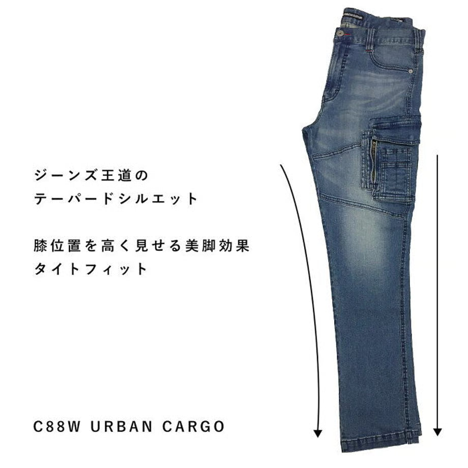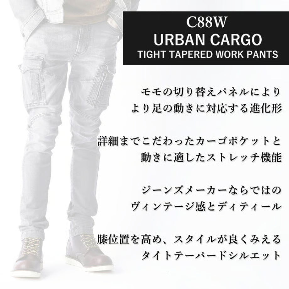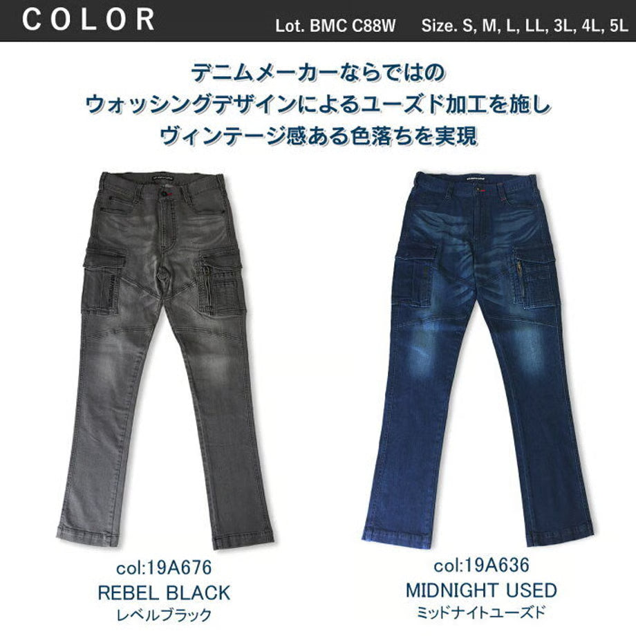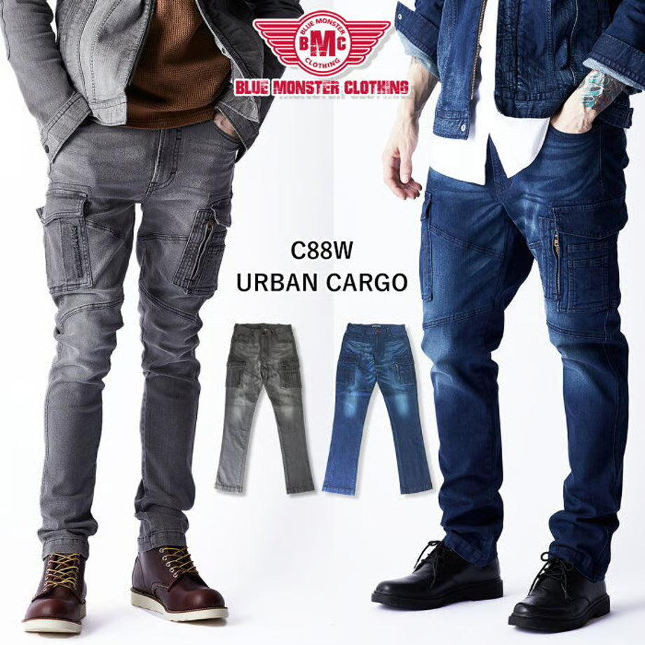 作業服 ストレッチデニム カーゴパンツ タイトフィット/ BMC URBAN CARGO REBEL BLACK & MIDNIGHT / C88W