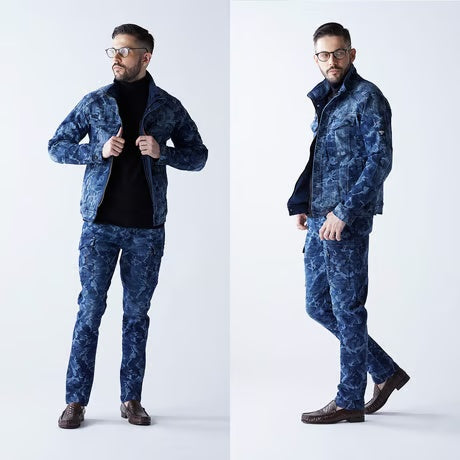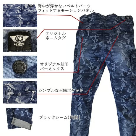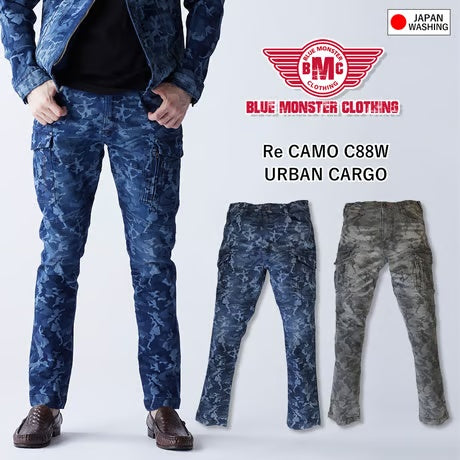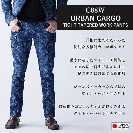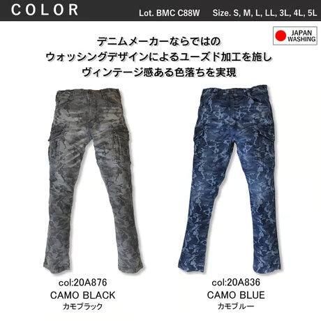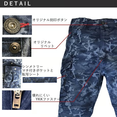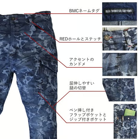 (限定:国内加工)作業服 ストレッチデニム カーゴパンツ タイトフィット/ BMC Re CAMO URBAN CARGO CAMO BLACK& CAMO BLUE / C88W