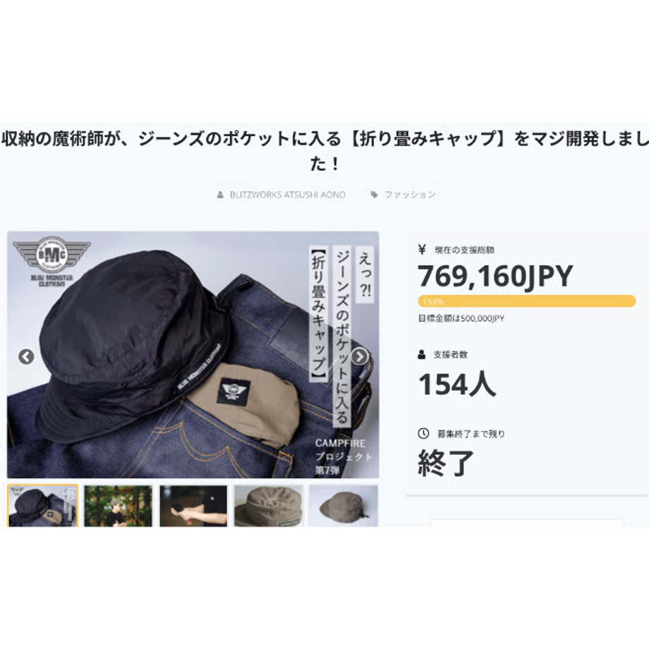 CAMPFIREで大人気なBMC(ブルーモンスタークロージング)の折り畳みキャップが登場。