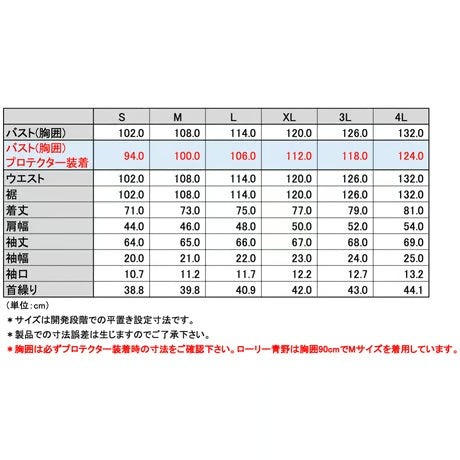 -サイズ:S、M、L、XL、3L、4L・・・寸法表を必ず参照