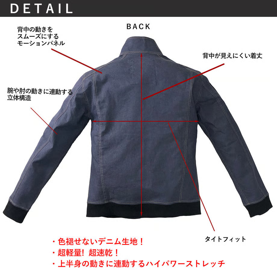 ・作業に大切な背中・肩の筋肉に連動する脅威のハイパワーストレッチ生地。
