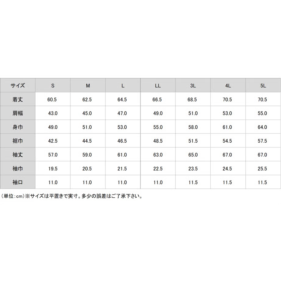 *サイズ(身幅は半分の寸法 / Sサイズ49.0cmは、体一周の寸法で98.0cm)
