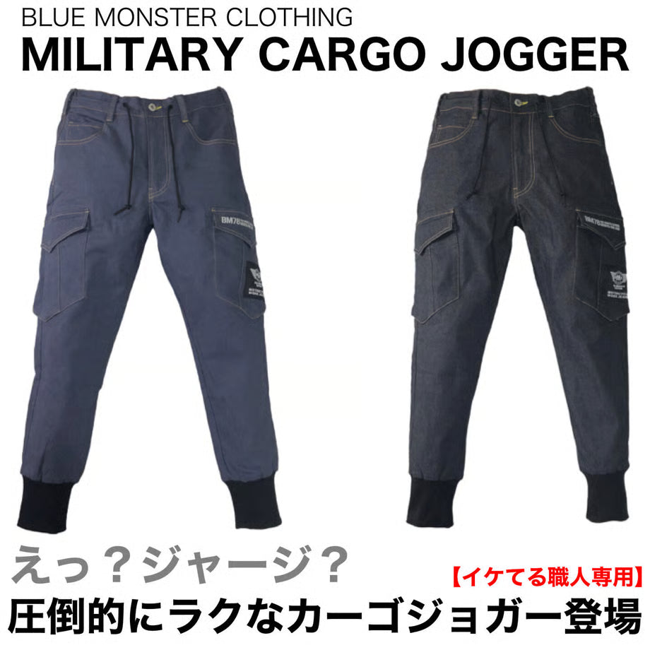 (色落ちしない&脅威のストレッチ)大容量カーゴジョガーパンツ/ BMC MILITARY CARGO JOGGER BLUE&BLACK / JC78W-22A00,22A01