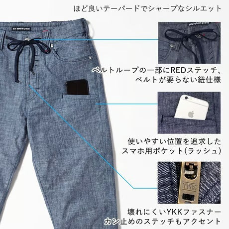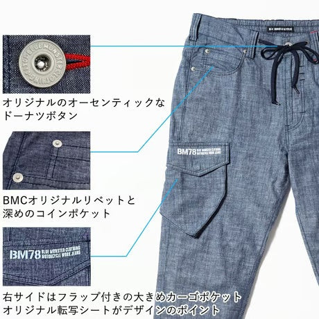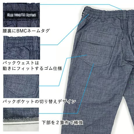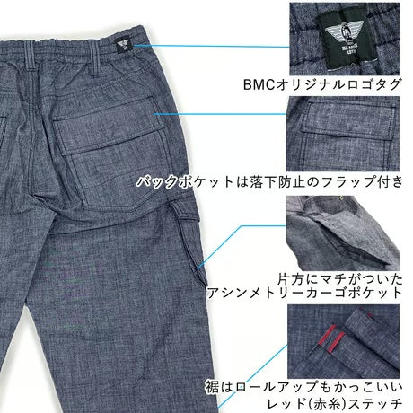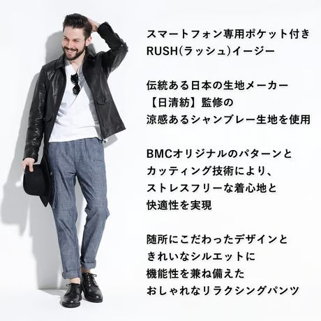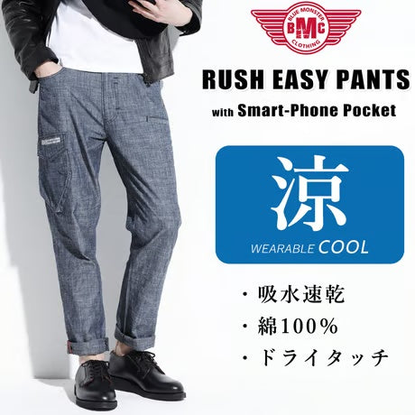 (サマーパンツ)スマホ専用ポケット シャンブレー イージーパンツ / BMC RUSH EASY PANTS RINSE /R78E1