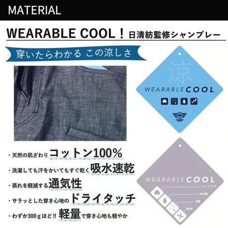 生地からこだわり、伝統ある日本生地メーカー『日清紡』が監修した涼感シャンブレー素材を採用。