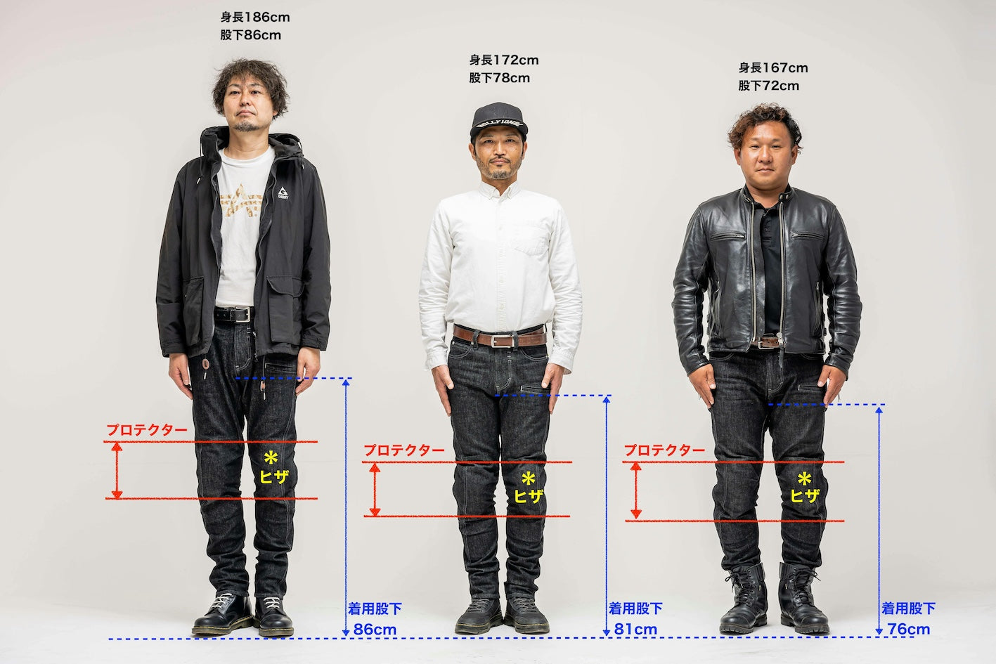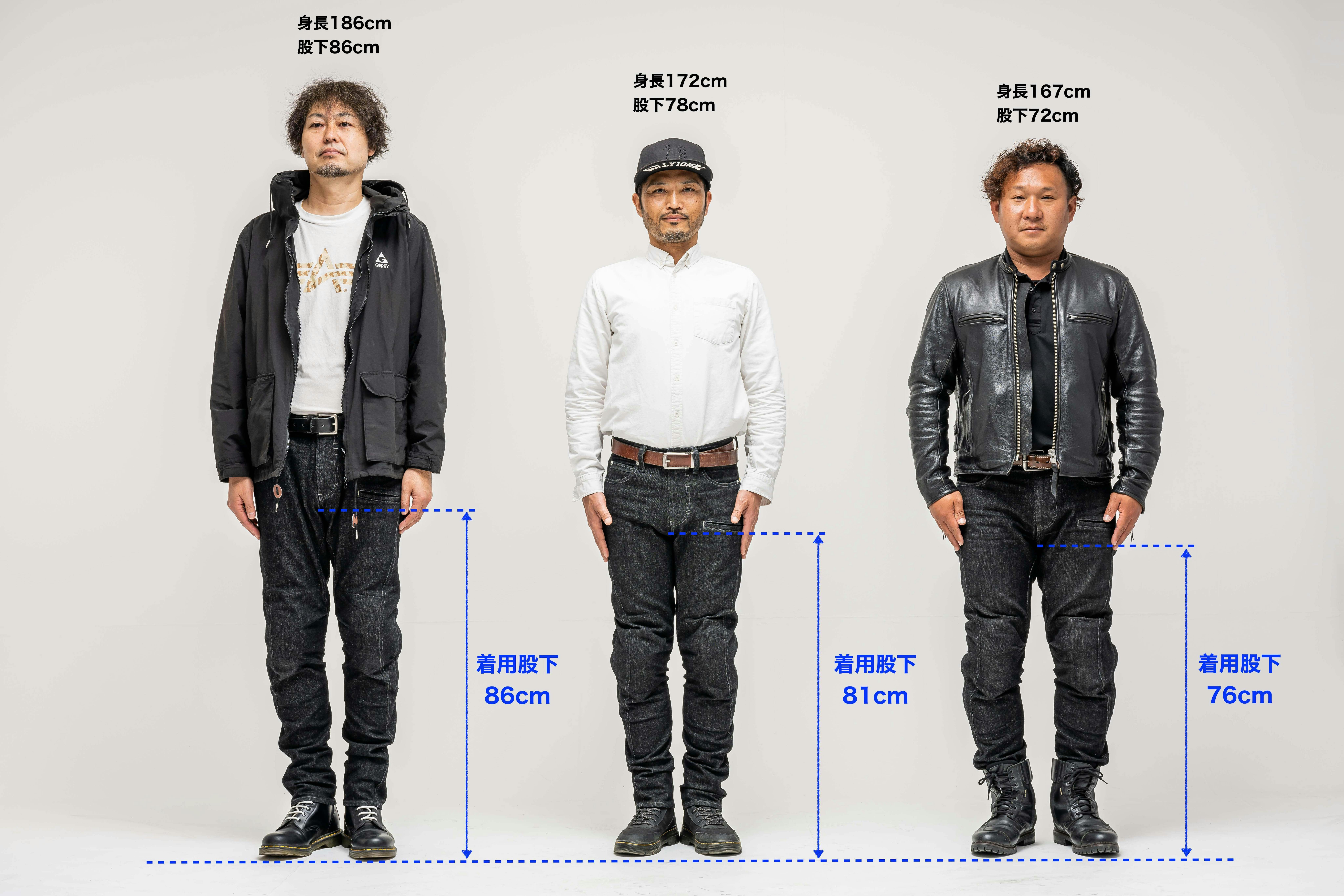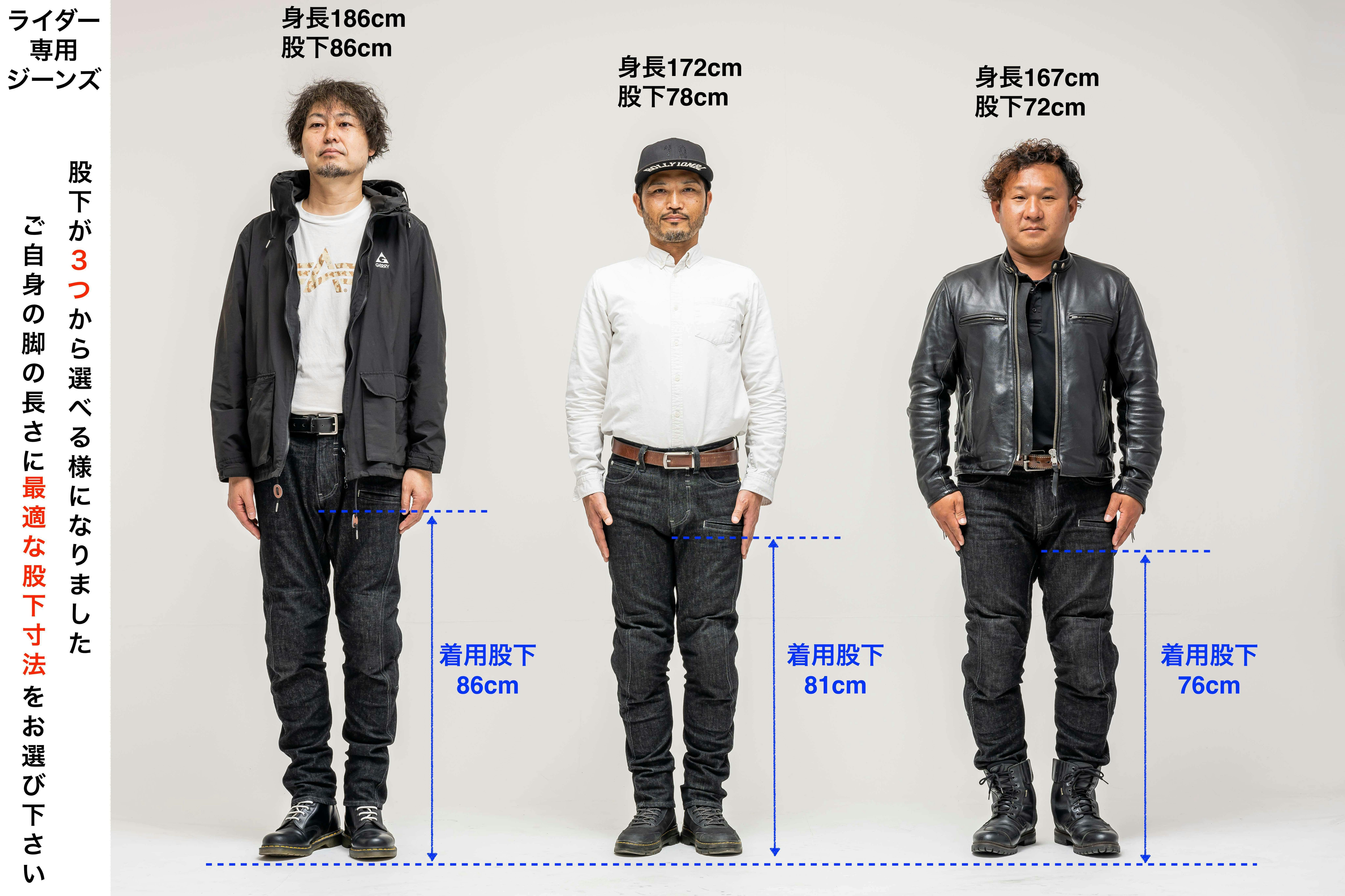 ライダーの要望に応えて、完全日本製【ライダー専用ブラックジーンズ】は股下寸法を3つから選べます!