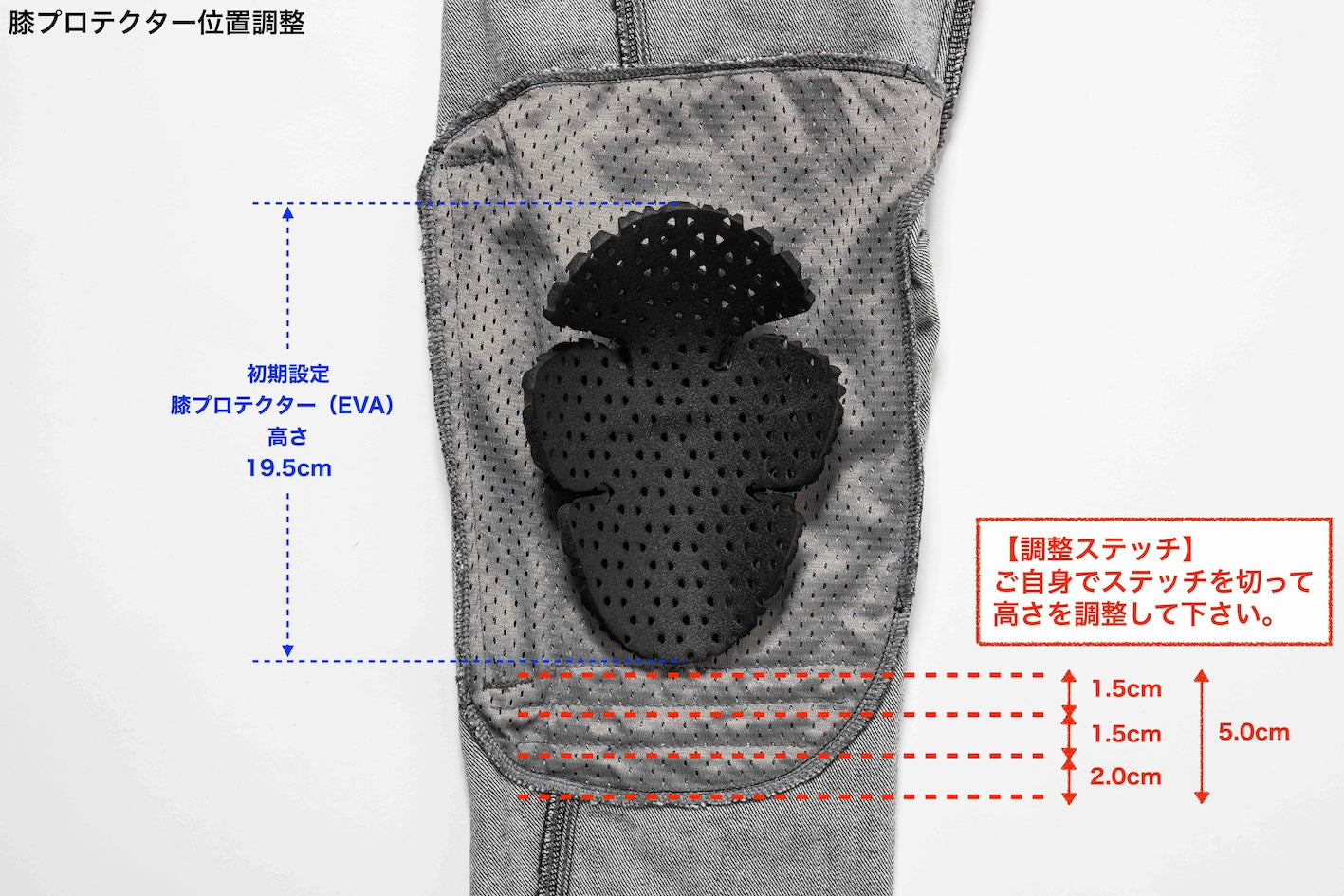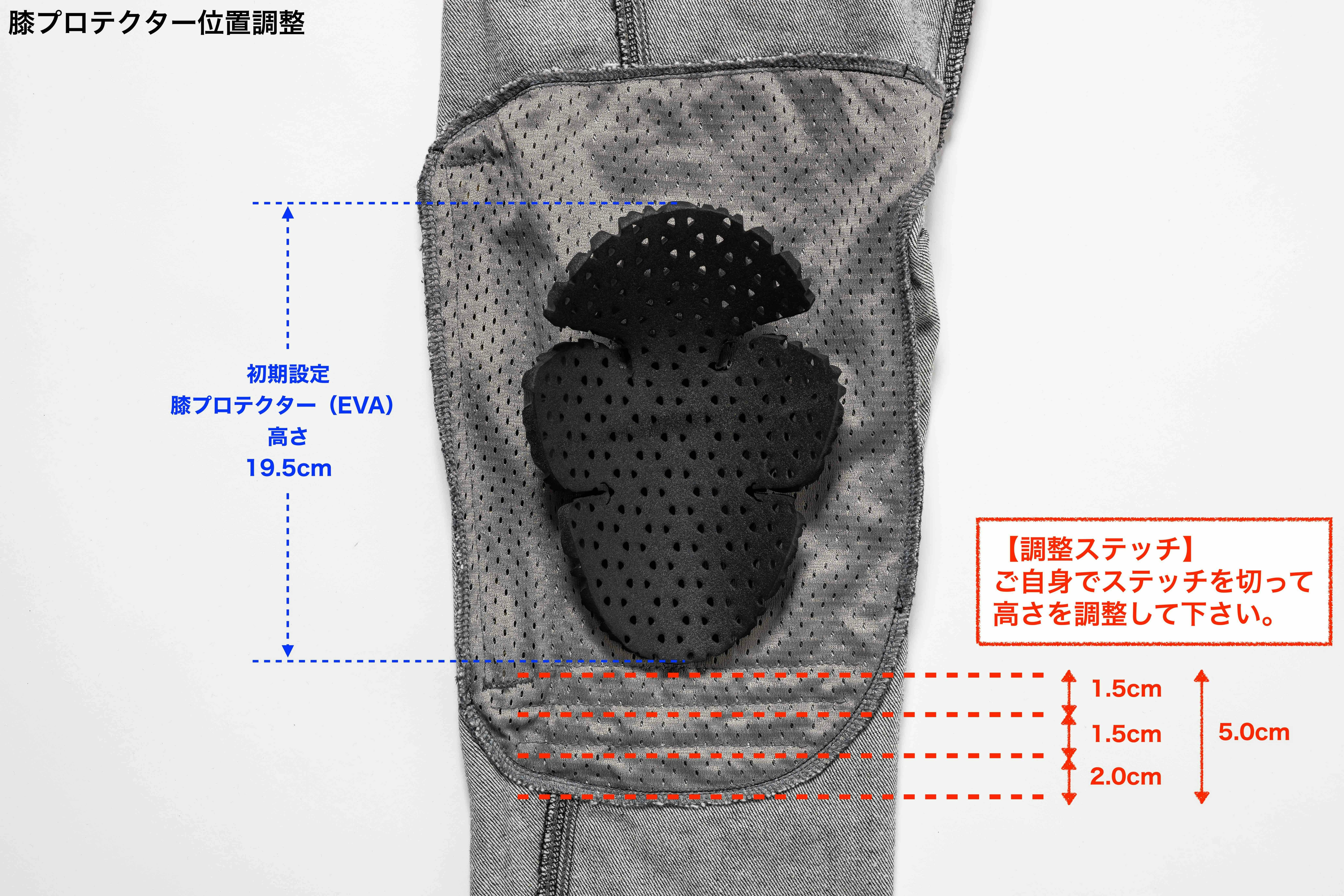 もし膝位置が合わない場合は・・・ご自身でプロテクター位置を調整できます。