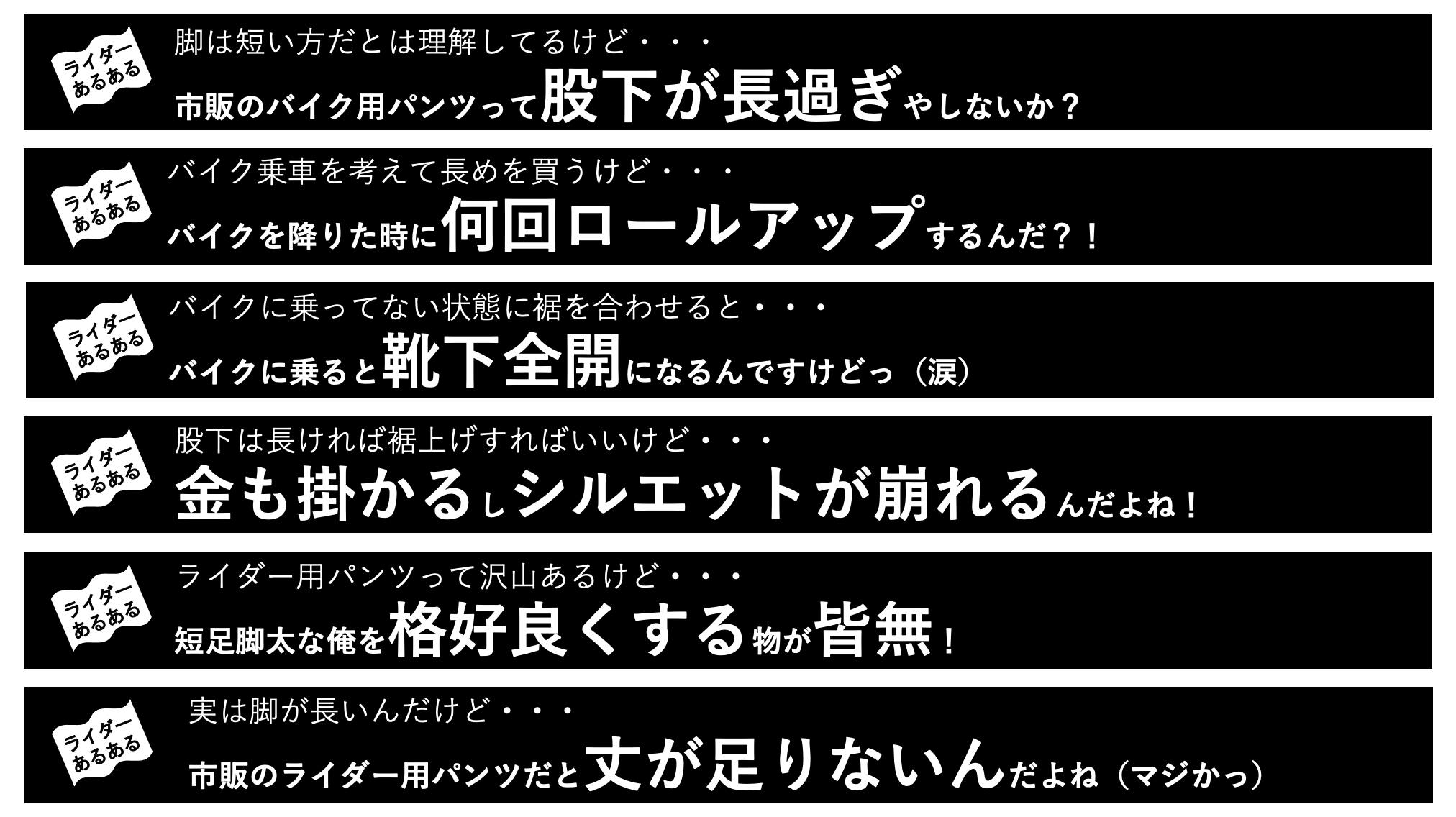 ライダーの皆様!朗報です!なんで無かったんでしょうか・・・『股下が選べる』バイク用パンツって。