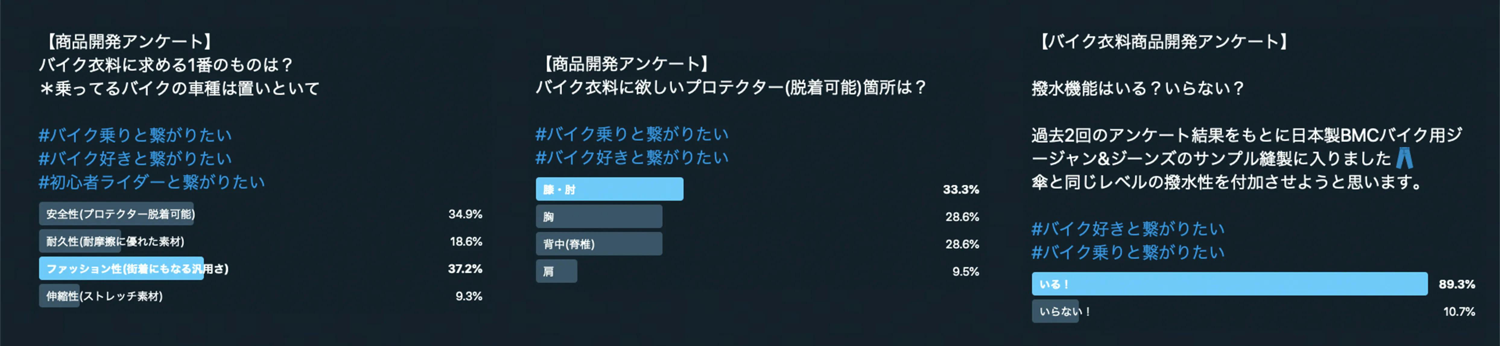 ライダーがリアルに望むアパレルの開発を今も続けています。