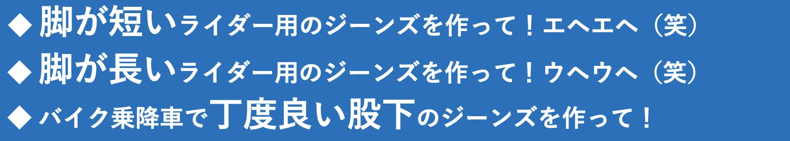 【ライダー専用ジーンズ】で 多く!強く!激しく!ときに優しく!頂く要望が・・・
