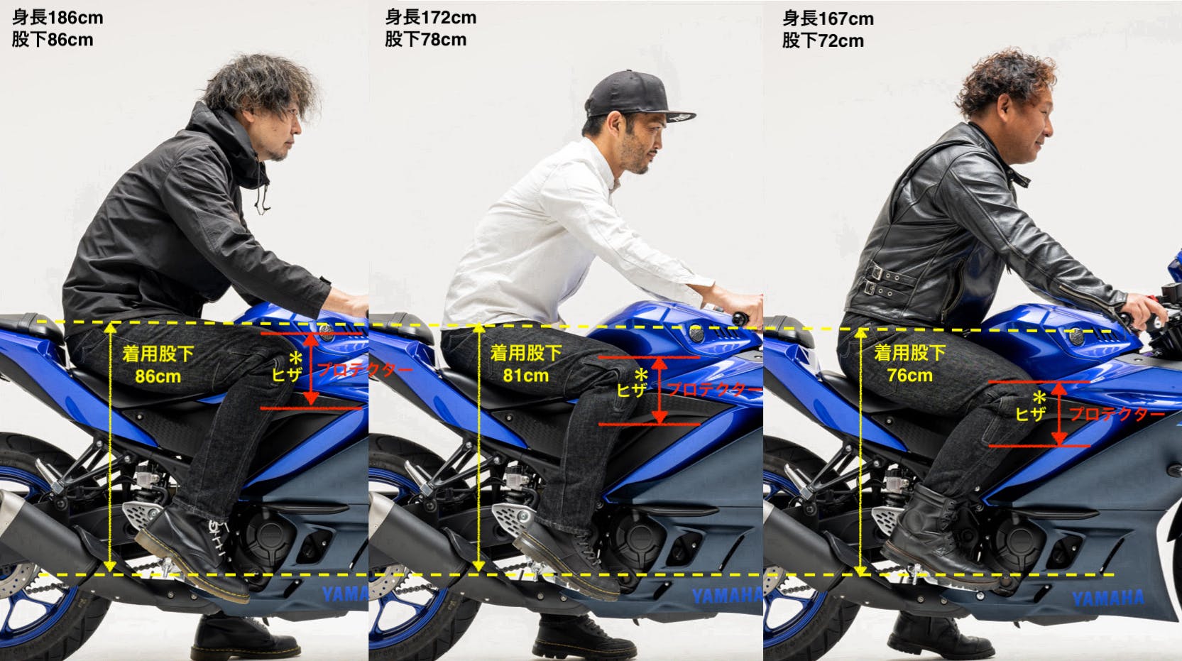 そう!そうなんです!『膝位置(プロテクター位置)』も股下に合わせて最適化しているんです!!!!!