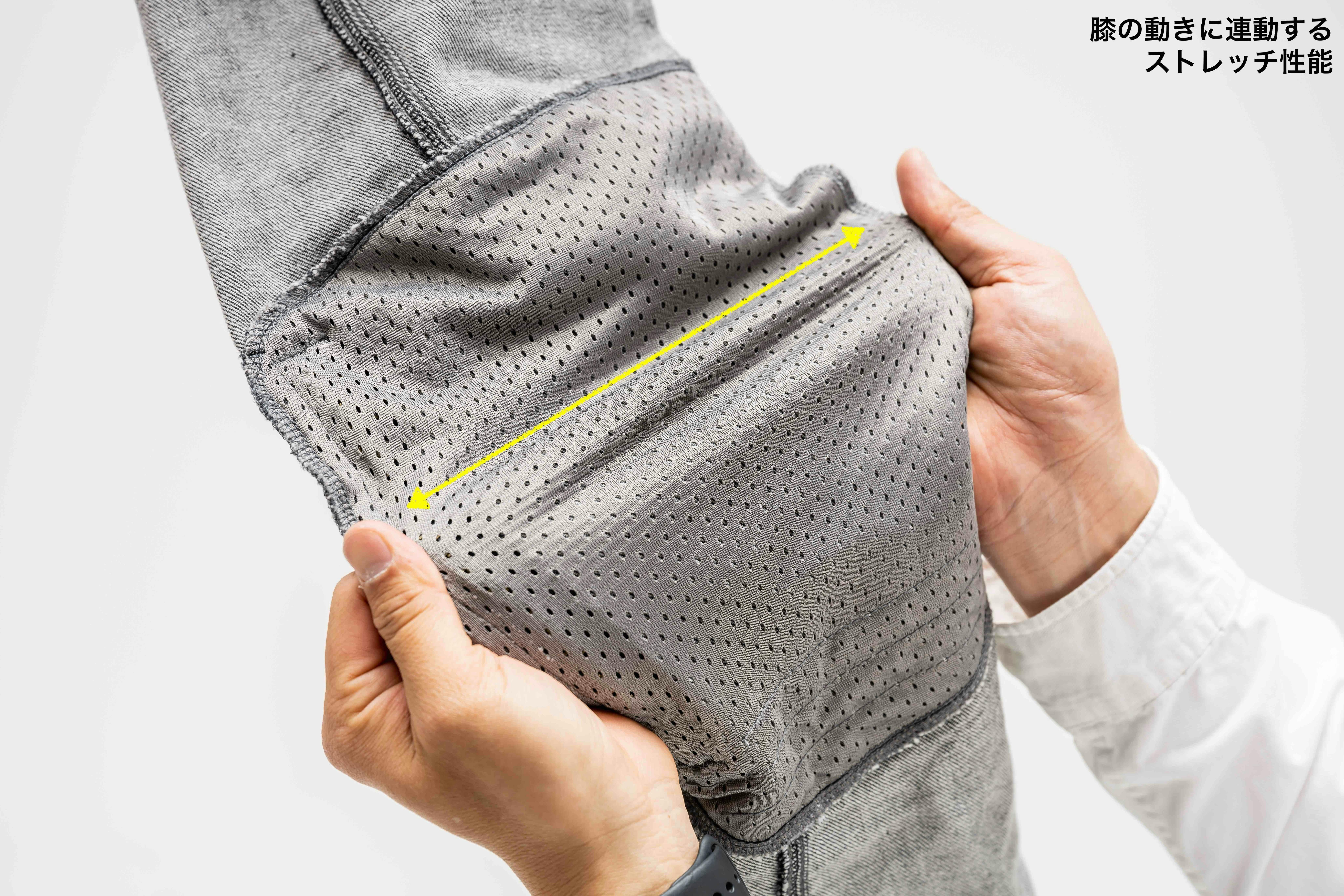 そして、ブラックデニムだけでなく・・・実は膝プロテクターが入る袋もストレッチなんです!
