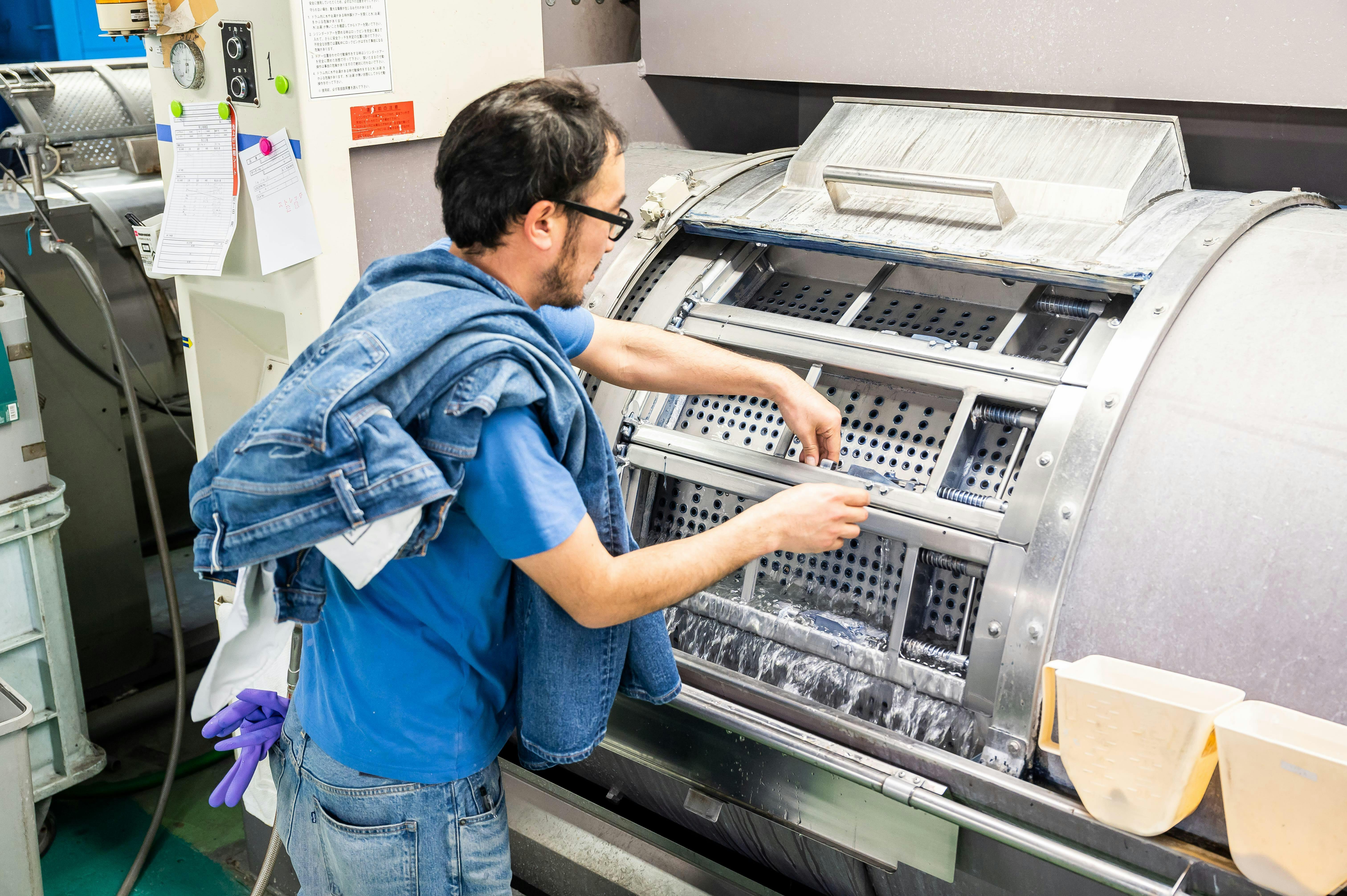 (ジーンズ洗い加工風景)