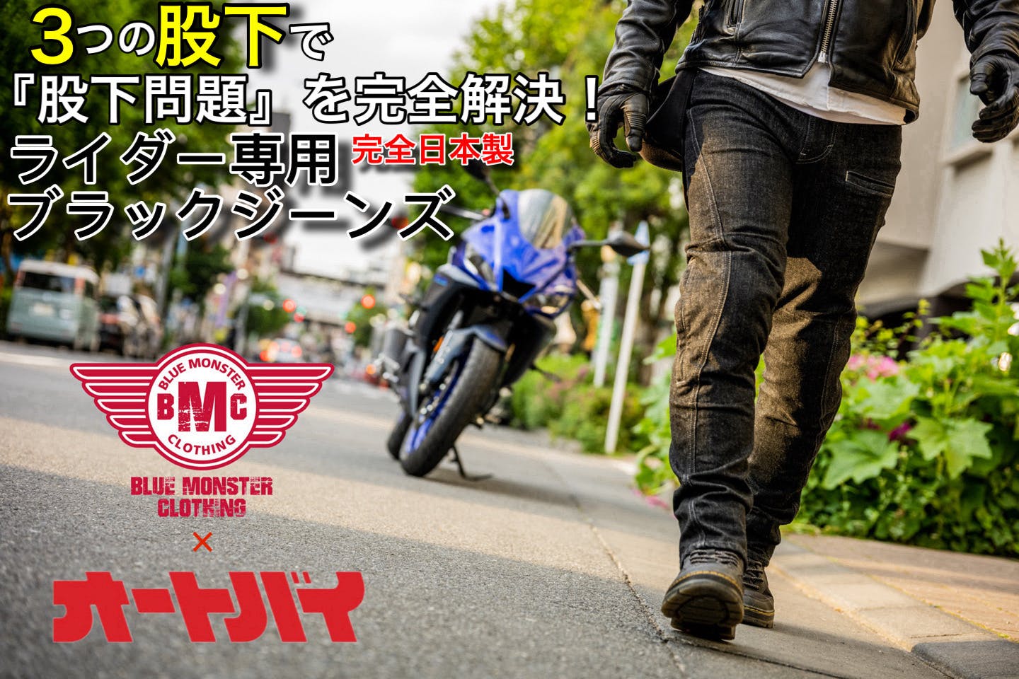 今回、ライダーからの強い要望である【股下問題】を解決する為に、『創刊100周年・月刊オートバイ編集部』監修のもと更にライダーに特化した完全日本製【ライダー専用ブラックジーンズ】が完成ました!