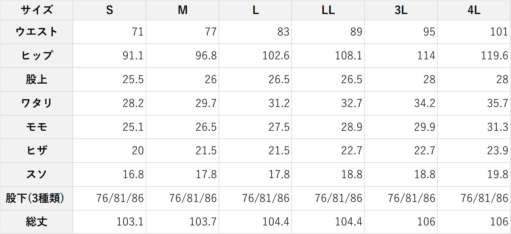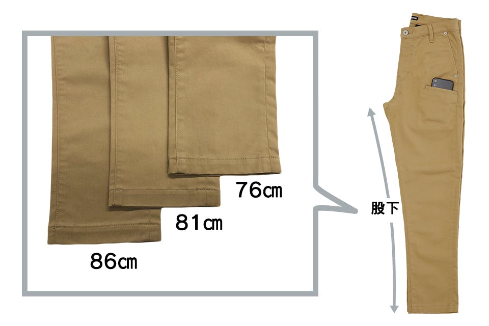 股下が、76cm・81cm・86cmの3つの中から選べるようになりました。