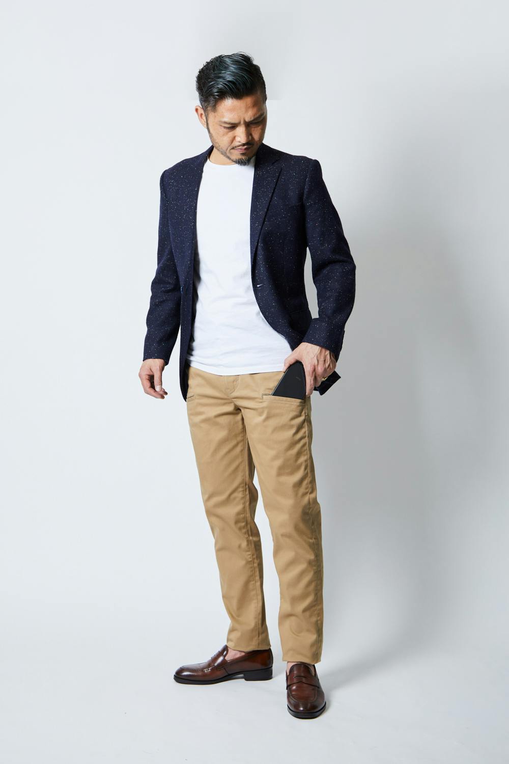 (着用時の感想)数年間このチノパンを仕事で穿いていますが・・・「ヤバイ!仕事できそう!」っていう満足感とシーン問わずファッションを楽しむ事ができる優れものだと思います!このチノパン脚長に見えません?さすが穿くだけでモテるチノパンですね(笑)