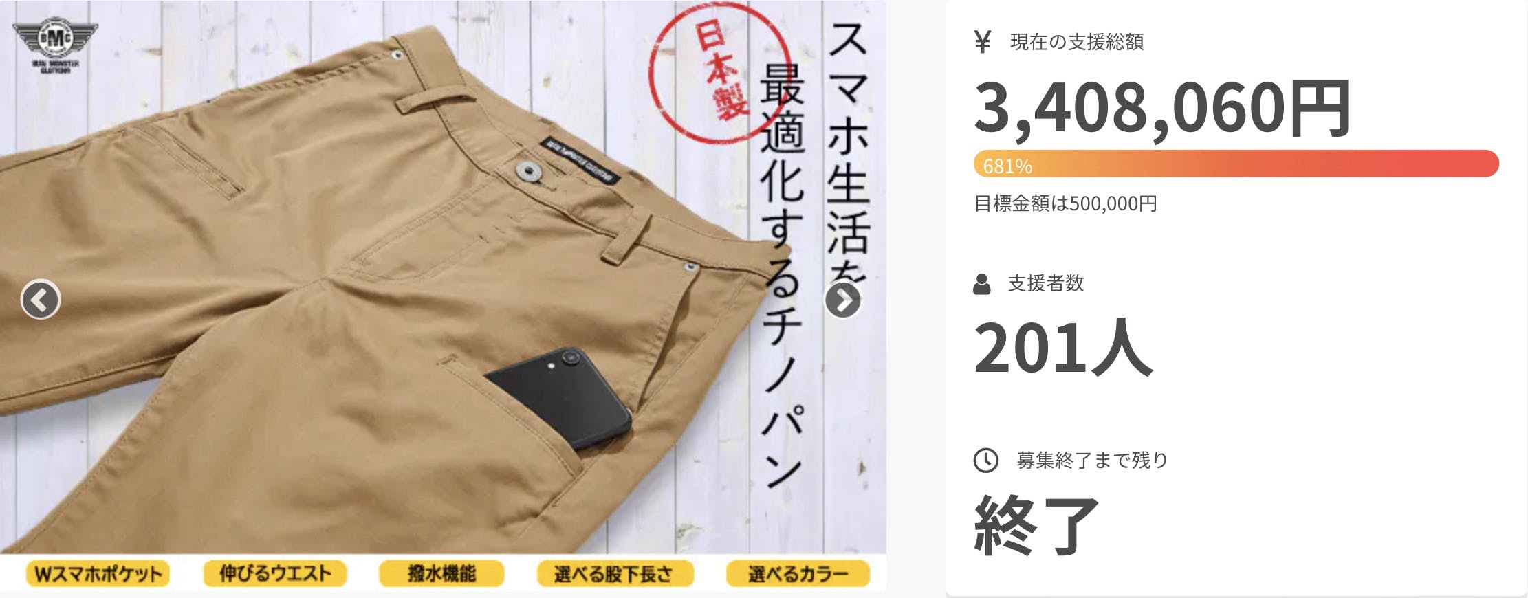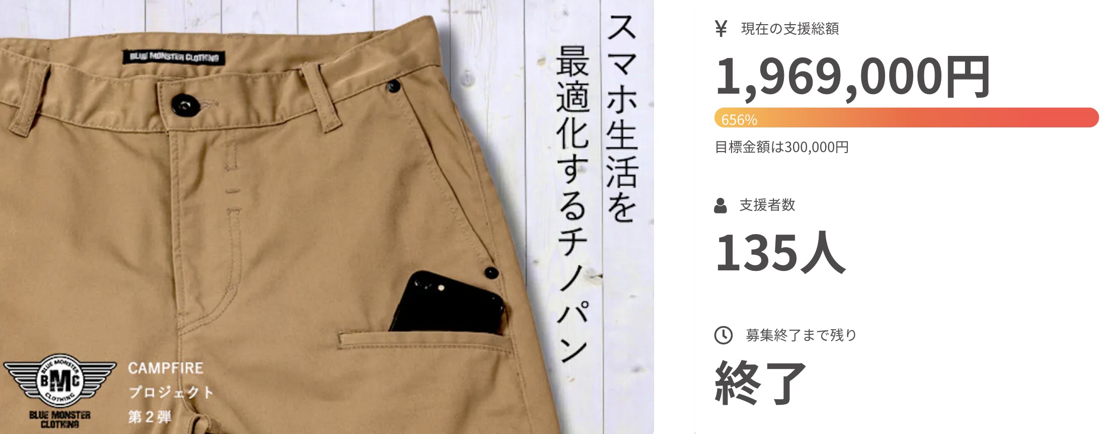 2019年に CAMPFIRE初登場して「えっ?スマホがそこに入るの?」の衝撃と共にスマホ生活を最適化したあの国産チノパン・・・
