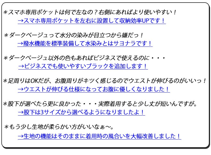 これを受けてジーンズ馬鹿の製品改善案は・・・