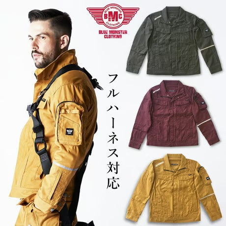 2019年2月1日から、全ての業種で6.75メートル(建設業は5メートル)以上で作業をする方々はフルハーネス型安全帯の着用が義務化されました。 カッコいいフルハーネスは売っているけど『それに見合う作業着がない!カッコいい専用の作って!』という熱いご要望をいただき、BMCが半年以上かけて真面目に開発いたしました。