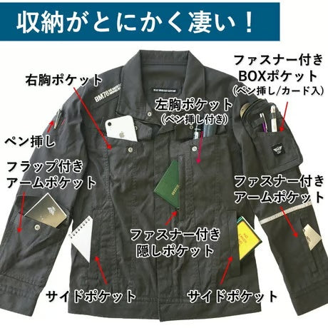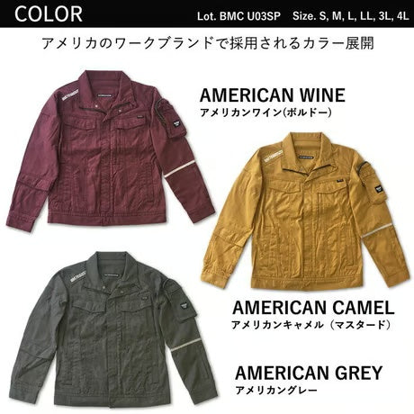 (コーデュラ cordura)作業服 ストレッチ 多収納ポケット付きジャケット レギュラーフィット/ BMC SKY PLAYER JACKET AMERICAN / U03SP