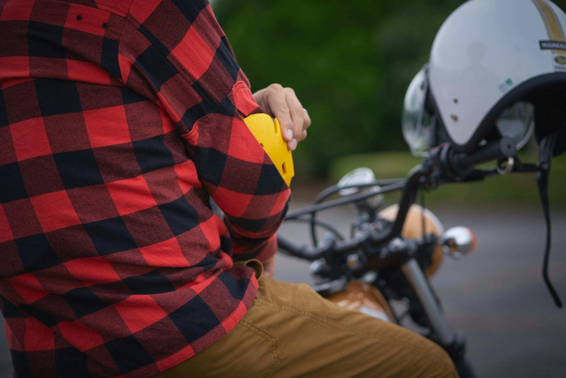 バイクに乗る時は、お持ちのプロテクターを入れて頂き(胸・背中プロテクターはご自身で用意して下さい)、バイクに乗らない時は、カジュアルなチェックシャツとして着回しができる。