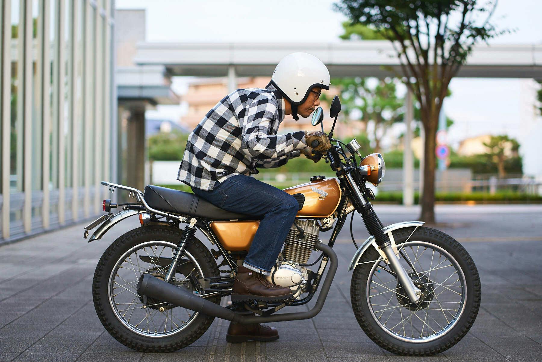 バイクに乗らない時は、カジュアルなチェックシャツとして着回しができる。