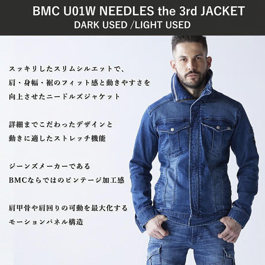 作業服 ストレッチデニム ジャケット ナローフィット/ BMC NEEDLES the 3rd JACKET DARK&LIGHT / U01W