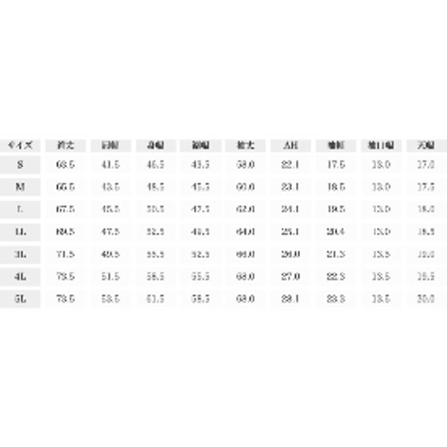 | サイズ | 着丈 | 肩幅 | 身幅 | 裾幅 | 袖丈 | AH | 袖幅 | 袖口幅 | 天幅 |