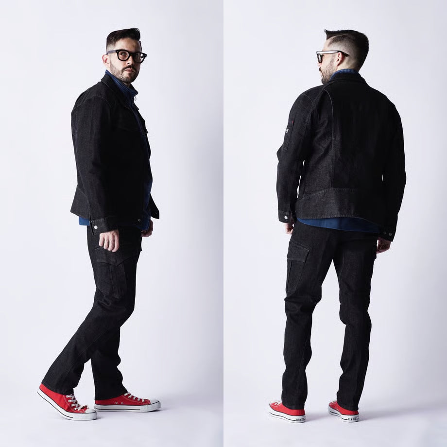背中や腕、脚の動きをデフォルトした立体構造で、身体の動きにフィットするオシャレ×機能的なデニムウェア。