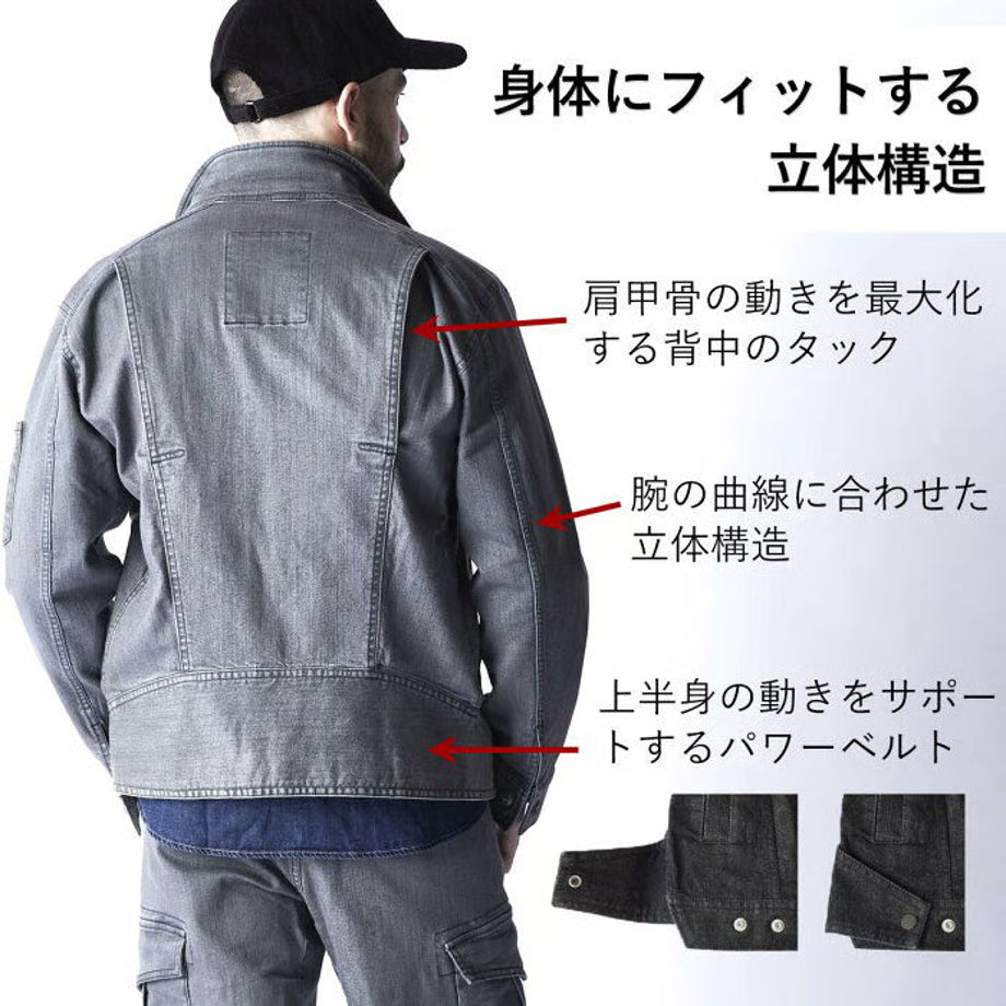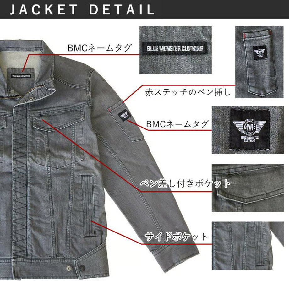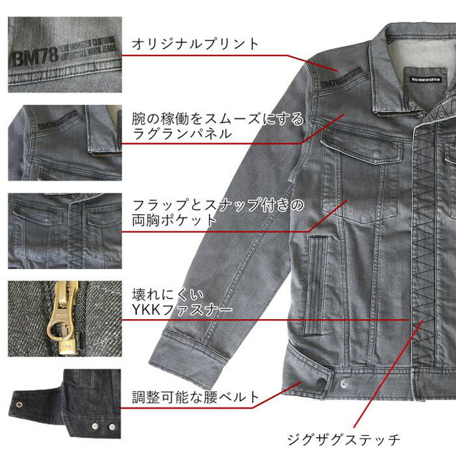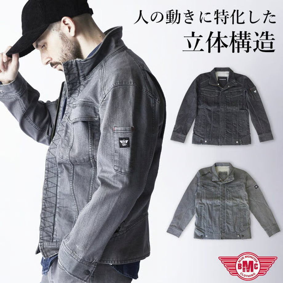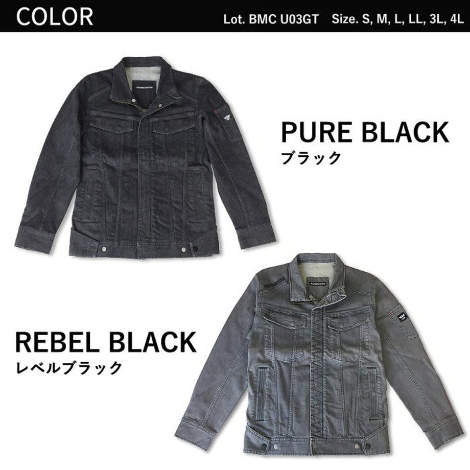 (立体構造)作業服 ストレッチデニム ライダージャケット レギュラーフィット/ BMC GT78-XX JACKET BLACK / U03GT