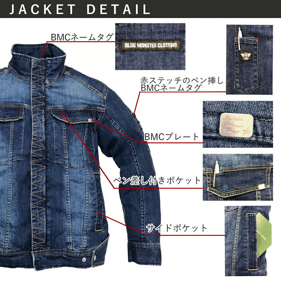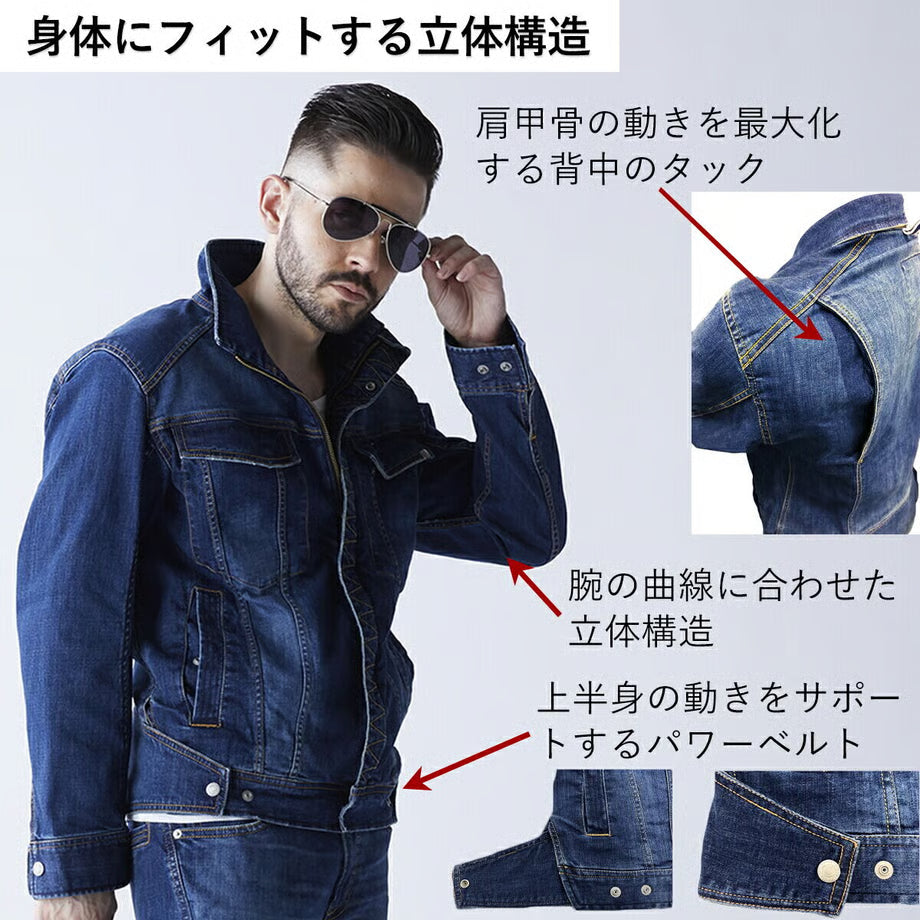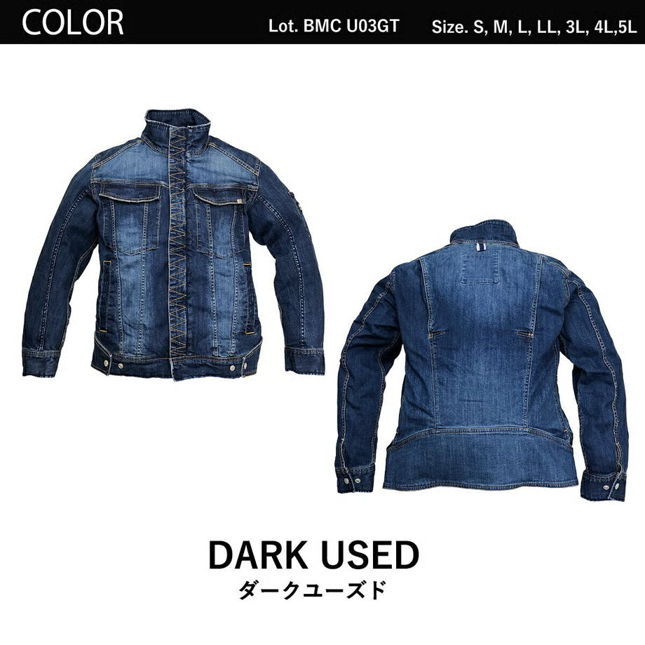 (立体構造)作業服 ストレッチデニム ライダージャケット レギュラーフィット/ BMC GT78-XX JACKET INDIGO DARK / U03GT