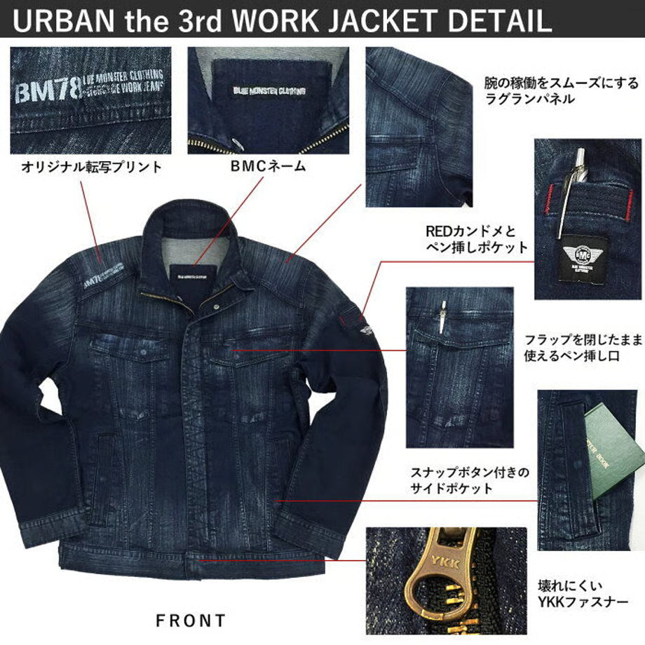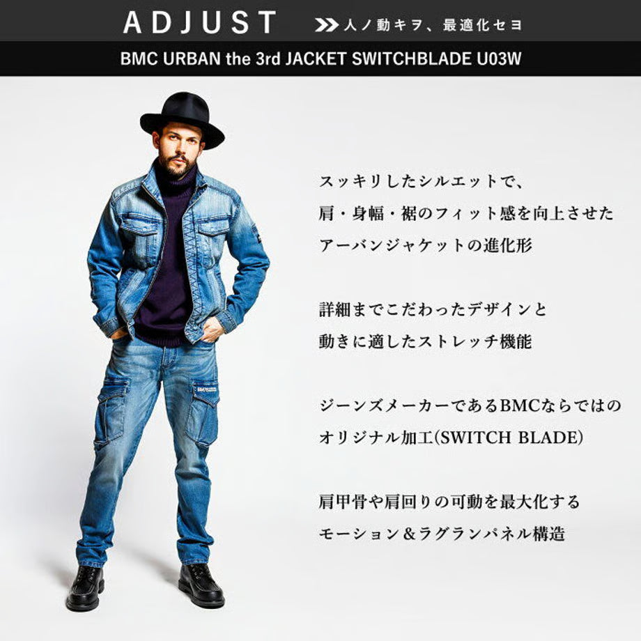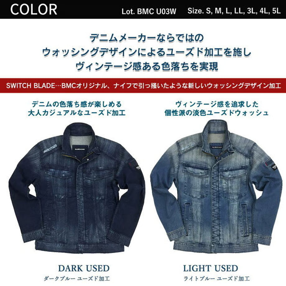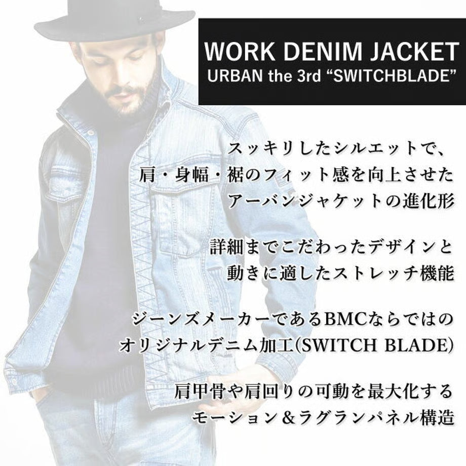 作業服 ストレッチデニム ジャケット レギュラーフィット/ BMC URBAN the 3rd JACKET DARK & LIGHT / U03W
