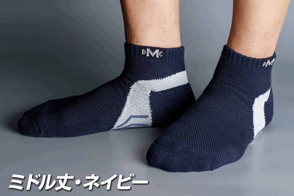 カジュアルにスポーツに適したミドル丈です。進化著しいスニーカーなどの軽い靴とこの【ノンストップ・ソックス】を組み合わせる事で、本当に履くと止まれなくなりますよ(笑)ここだけの話(冒頭で伝えていますが)・・・一応マラソンを嗜みます。日々のランニングでミドル丈【ノンストップ・ソックス】を履いてますが、本当に疲れないので永久に走れる感覚になりますよ(笑)ランナーの皆様にもおすすめです!